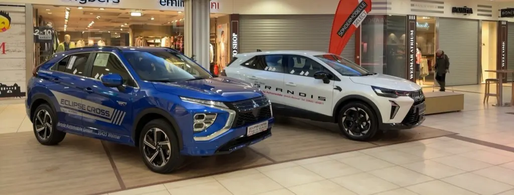 Besuchen Sie unsere Ausstellung im UG1 vor Rossmann im Atrium Weimar und entdecken Sie ausgewählte Fahrzeuge hautnah.