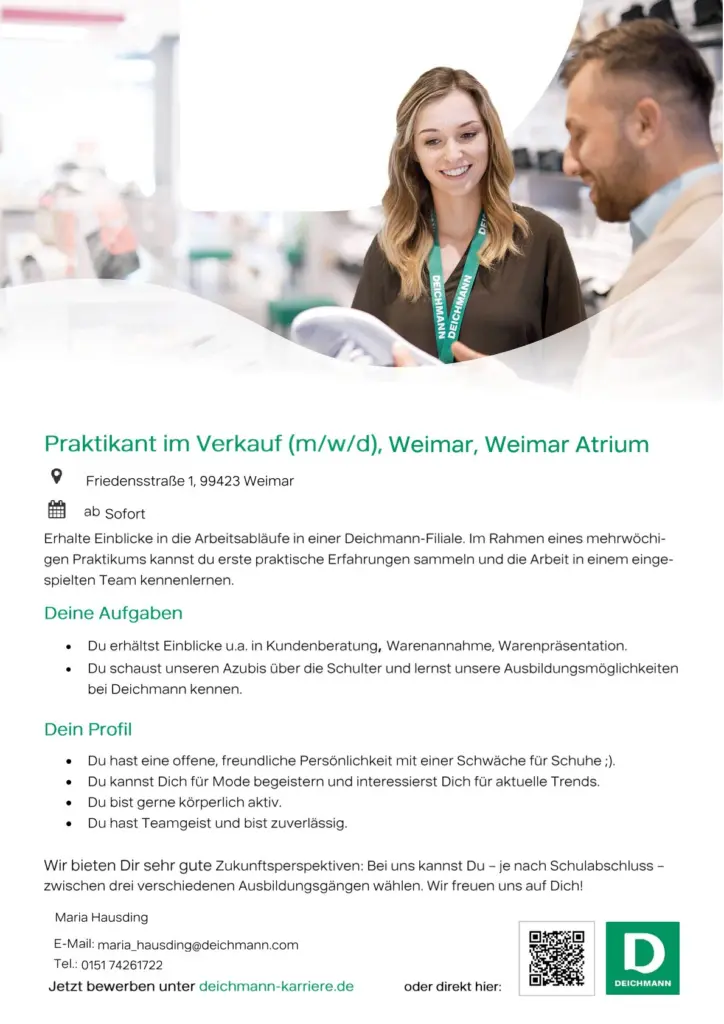 Du möchtest erste Einblicke in den Einzelhandel gewinnen und praktische Erfahrungen sammeln? Dann starte dein Praktikum im Verkauf in unserer Filiale im Weimar Atrium!